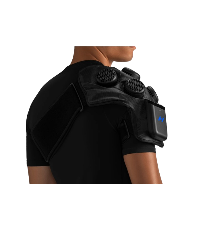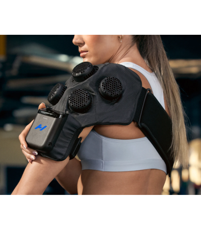 Hyperice X 2 este un dispozitiv complet electronic pentru terapie prin contrast conceput pentru a reduce inflamatia si a diminua durerea la nivelul umarului.